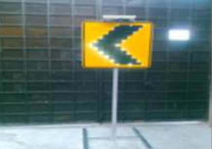 SEÑAL CHEVRON SOLAR A BASE DE LEDS DER. O IZQ. DE LAMINA GALVANIZADA CAL. 16 REFLEJANTE ALTA INTENSIDAD Y VINIL NEGRO POSTE TIPO H MEDIDAS 60 X 76 O 76 X 90 CMS. |